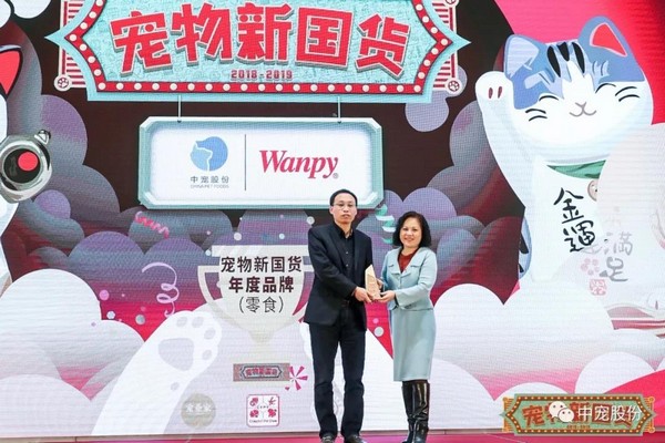 大会以“不搞平均主义,真正的王者只有一个”为宗旨,设置主粮、零食、用品、智能用品、医疗保健等几个细分市场的年度品牌、年度畅销品牌、年度创新产品三大奖项。组委会集结50家展会代表、协会代表、媒体代表、渠道代表共同组成宠物新国货专家评审团,从数百个中国品牌和产品中评选出2018年度能够为宠物新国货发声的品牌和产品。最终,中宠股份旗下Wanpy荣获年度品牌大奖(零食)、King Kitty苹果木猫砂荣获年度创新产品奖(用品)、Dr.Hao处方湿粮荣获年度创新产品奖(保健品),成为颁奖礼上的大赢家。