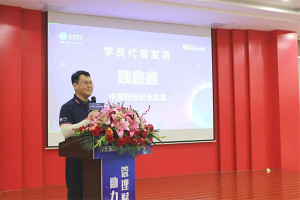 随后,学员代表中宠股份安全总监魏鑫鑫发言。魏总首先对集团投入时间精力以及财力组织MBA高级研修班活动表示感谢,感谢公司对员工的悉心栽培,并对本次的学习表达了强烈的期待以及积极参与、认真学且学以致用的信心和决心。