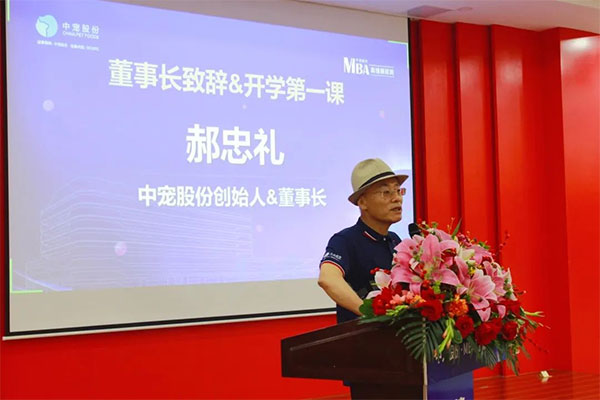 典礼的高潮是中宠股份创始人、董事长郝忠礼的致辞,以及郝董以己为例,为学员们带来的开学第一课。