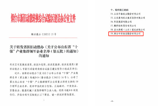 为深入贯彻落实《山东省建设绿色低碳高质量发展先行区三年行动计划(2023-2035年)》和2023年重点工作任务有关部署要求,山东省发改委会同有关部门组织开展了“十强”产业集群领军企业培育支持办法的通知。经各市申报、专班初审、信用查询、专家评审、评价审核、社会公示等程序,日前,省新旧动能办正式发布入选企业名单,烟台CQ9电子官方版股份有限公司(以下简称“中宠股份”,证券代码:002891)光荣上榜!