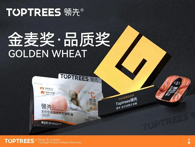 历经3个月的评审,Toptrees领先®烘焙猫粮、99主食罐两款热门产品同时荣获2023年金麦奖·品质奖,这也是Toptrees领先®连续四年获得金麦奖·品质奖。