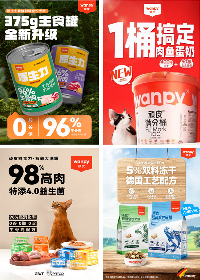 围绕集团“聚焦主粮”的发展战略,wanpy顽皮®品牌2023年从产品的工艺、配方、技术等多维度出发,完成从干粮、湿粮到零食的全品类梳理,并在线上线下接连推出原生力鲜封罐、满分桶、大满罐、生骨肉双拼猫犬粮等多款热门新品,为养宠家庭提供更多样化的喂养选择。