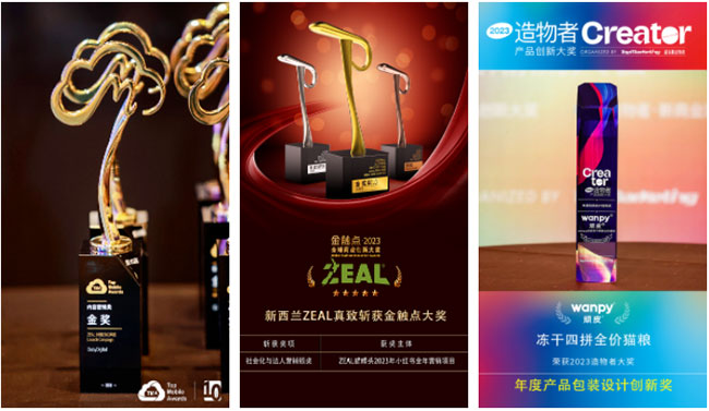 近日,中宠股份旗下核心自主品牌wanpy顽皮®、新西兰ZEAL真致®斩获三项大奖。其中,ZEAL0号罐2023年度Launch Campaign何超莲复刻人类版高质量罐罐获“第10届TMA大奖·内容营销金奖”荣誉;ZEAL猫罐头2023年小红书全年营销项目获“2023金触点大奖·社会化与达人营销银奖”。wanpy顽皮®品牌下的冻干四拼全价猫粮也成功荣获“2023造物者大奖·产品包装设计创新奖”荣誉。在“聚焦战略”的长期指导下,中宠股份自主品牌建设收获市场认可。