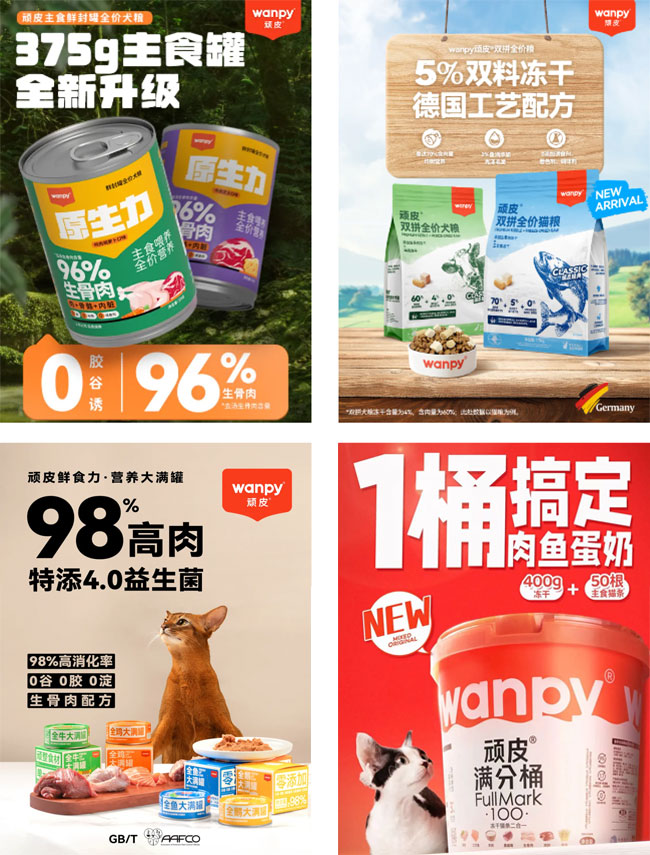 产品方面,wanpy顽皮®品牌以宠物主粮为核心,接连推出原生力犬主食罐、生骨肉双拼粮、顽皮大满罐等多款干湿粮产品。在零食赛道,集冻干与主食猫条为一体的顽皮满分桶在亚宠展现场惊喜亮相,在中宠股份的战略指引下,wanpy顽皮®品牌不仅进一步丰富了国内养宠用户的喂养选择,也满足了日益多样化的市场需求,为中宠股份深入布局主粮赛道提供持续助力。