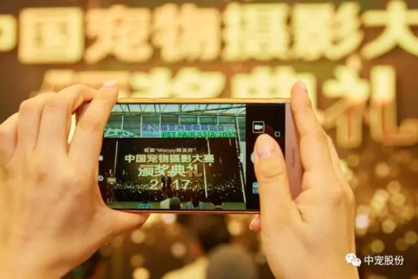 出席此次摄影大赛的颁奖嘉宾有:中国礼仪休闲用品工业协会理事长曾会师女士、上海万耀企龙展览有限公司总裁仲刚先生、国内知名宠物摄影师玄素女士、《宠物世界》主编张琳女士、国内知名宠物社区-闻闻窝CEO孙岩先生、北京市养犬协会会长沈瑞洪先生、中宠股份董事长郝忠礼先生。分别为主题奖一等奖、单项奖共6位获奖嘉宾颁发奖杯及证书。