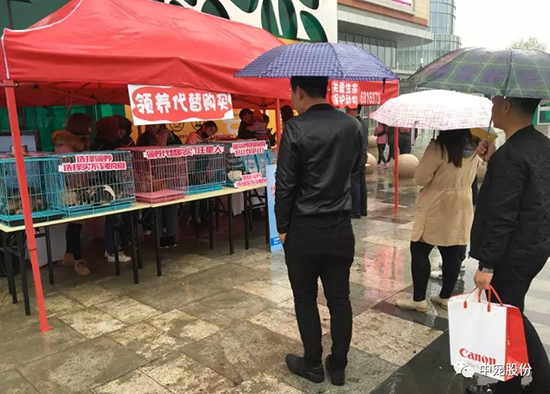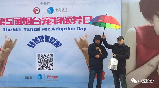中宠股份独家赞助第五届烟台宠物领养日活动,近二十只流浪犬来到烟台大悦城广场,等待对的人出现。虽大雨倾盆,但是大家为爱不惧暴雨,只为Ta们能够拥有一个家!